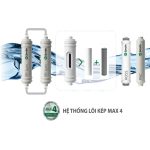 Hệ thống lõi kép MAX4: Hỗ trợ tăng tuổi thọ lõi tiền lọc 2 lần, giảm thiểu hiện tượng tắc lõi tiền lọc, thời gian thay lõi lọc lâu hơn lên đến 18 tháng, sản phẩm hoạt động ổn định hơn, bền bỉ hơn trong điều kiện nước máy đầu vào kém chất lượng và không ổn định.